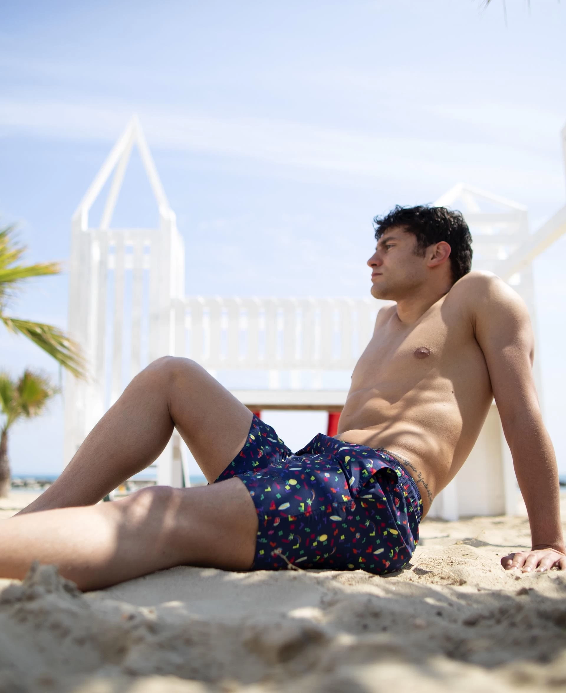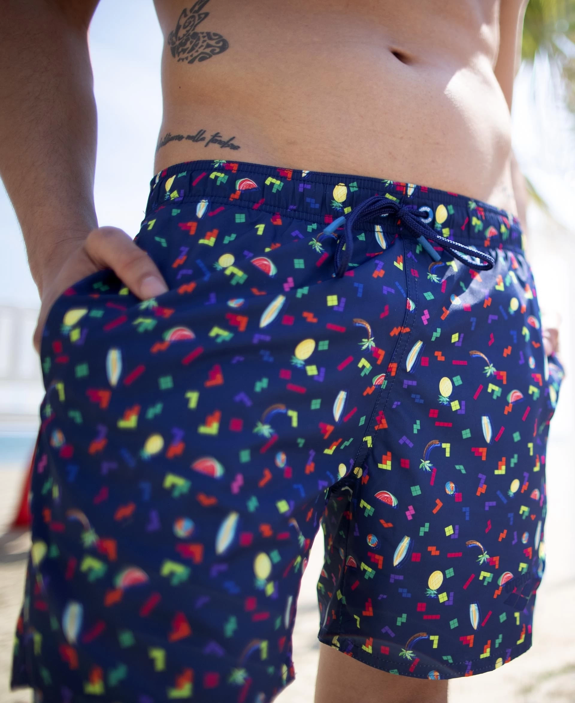 The extremely comfortable and sporty arena men’s Allover Beach Boxers are ideal for swimming, leisure and sports activities in the pool or at the beach.