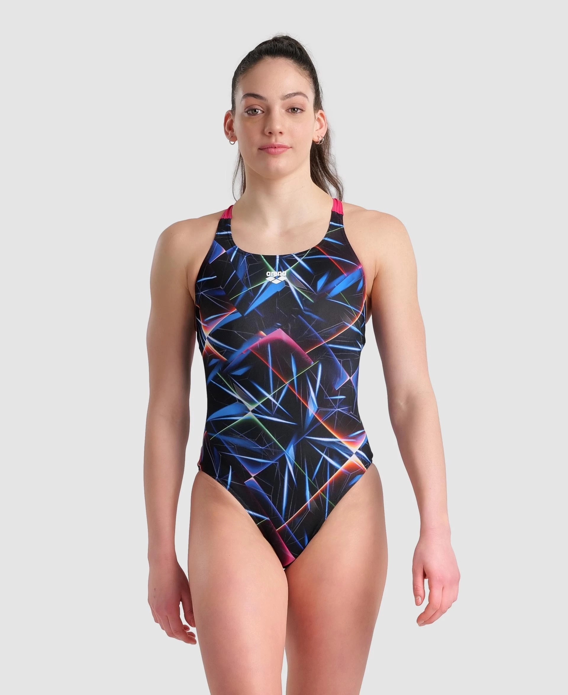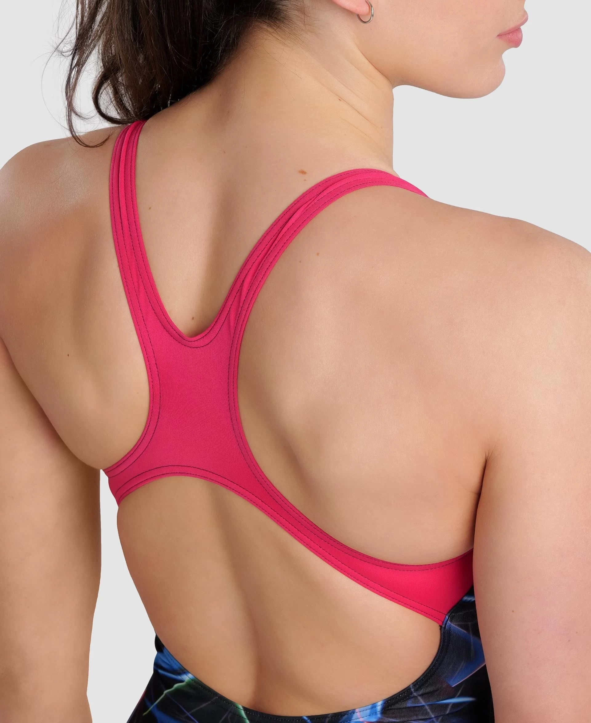 A classic arena swimsuit back with a comfortable cutout and wide supportive straps.