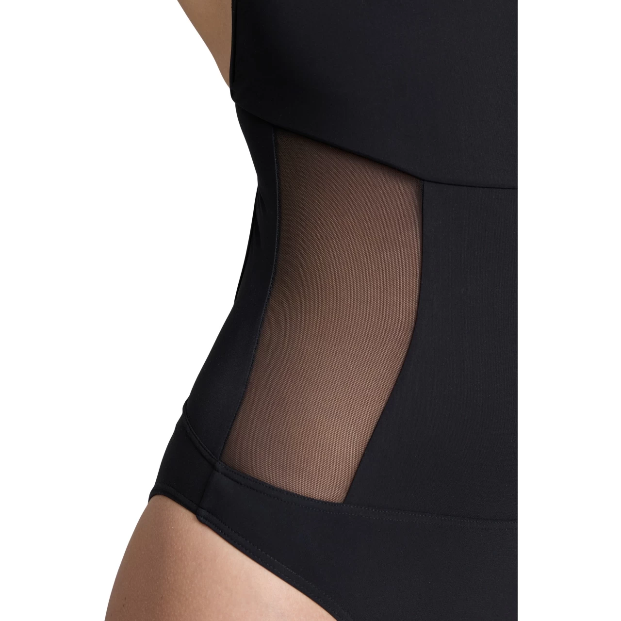 - Feel one with the water in this unique sophisticated swimsuit with elegant mesh panels, that fits like a second skin and offers outstanding comfort everywhere you swim.