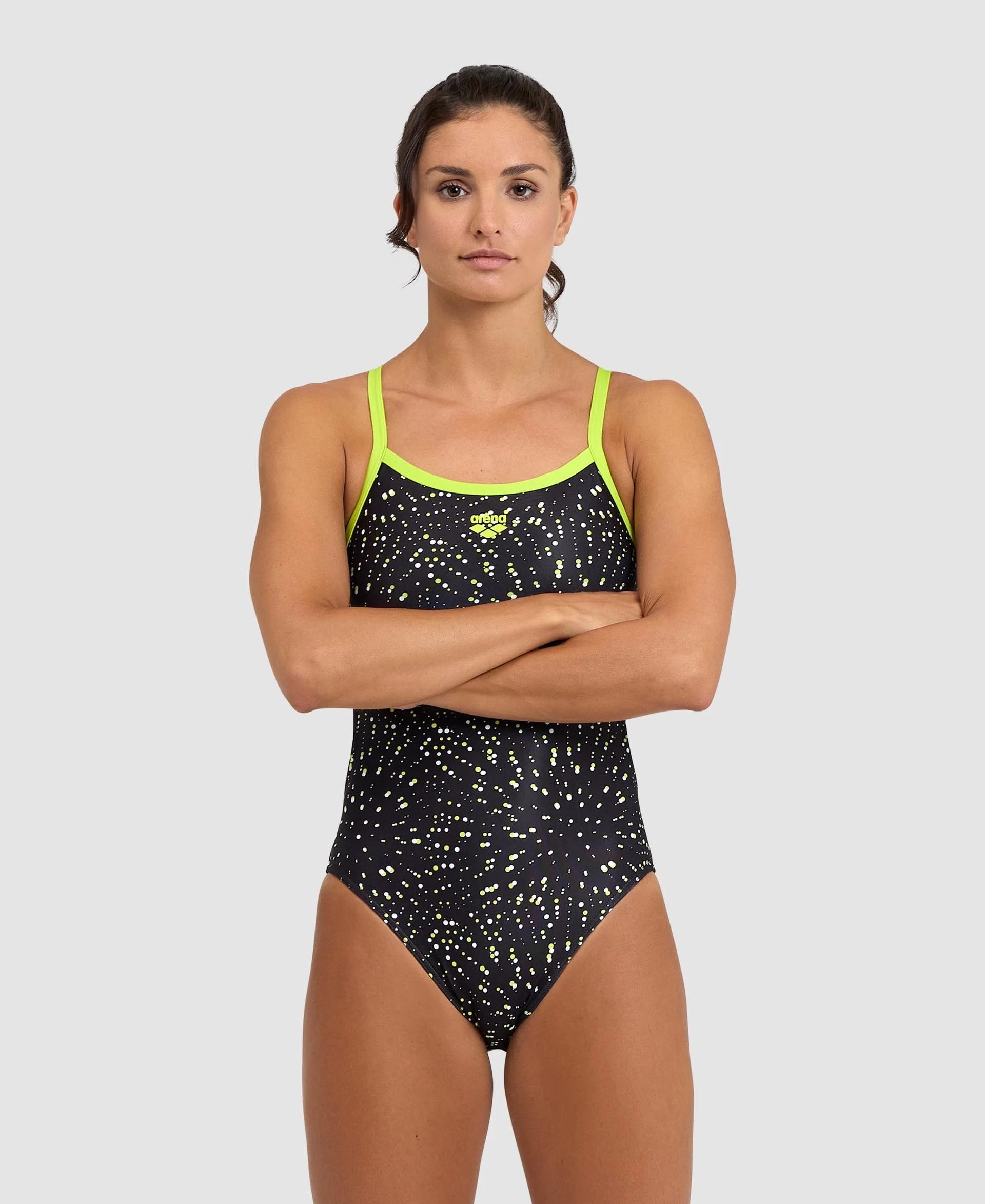The extremely durable, chlorine-proof and stylish arena Fireworks Challenge Back Swimsuit for women from arena Performance line is ideal for both competitive and regular swimmers who swim frequently in the pool. The highly chlorine-resistant MaxLife Eco fabric with integrated UPF 50+ UV protection is extremely quick-drying and long-lasting.