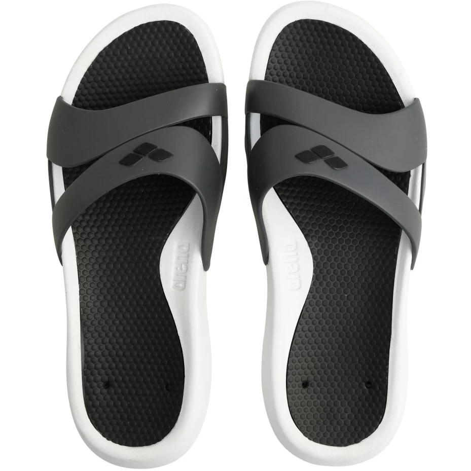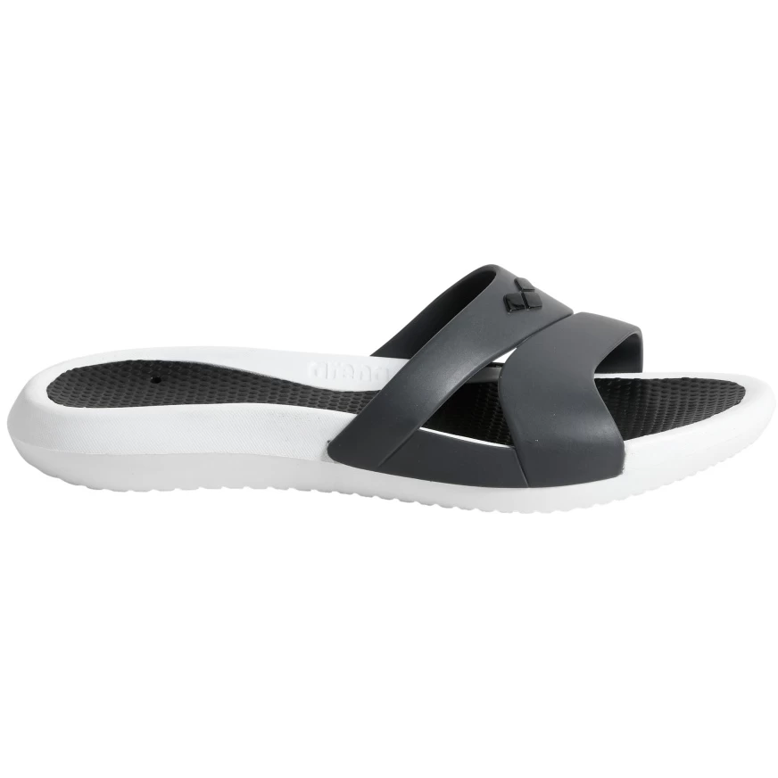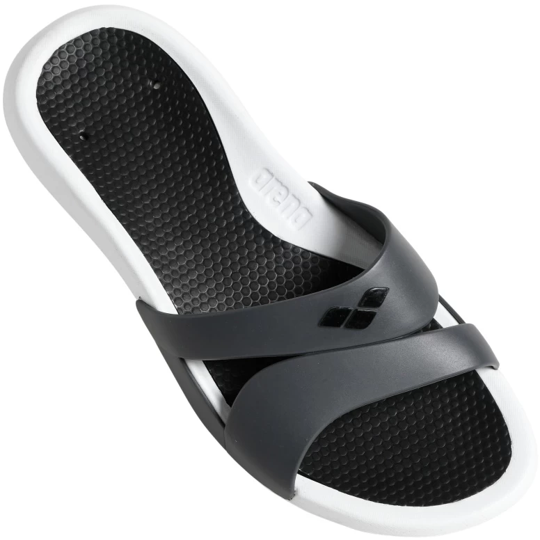 The extremely lightweight, stylish and comfortable arena women Slide Sandals Nina are designed for water activities at the pool and at the beach. The water drainage system drains off water quickly. For dry feet and non-slip fit in the shoe. The textured footbed offers superior softness and cushioning. Women love the feminine design.
