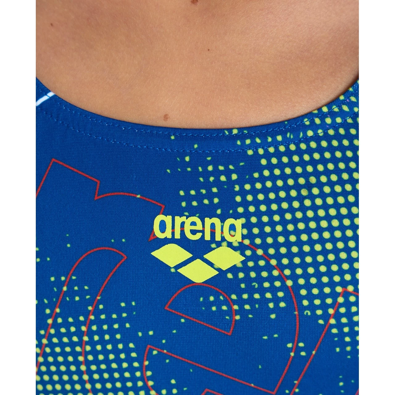 The sporty arena Galactics Swim Pro Back Swimsuit for girls is ideal for both competitive and regular swimmers who swim frequently in the pool. The highly chlorine-resistant MaxLife Eco fabric with integrated UPF 50+ UV protection is extremely quick-drying and long-lasting. This eco-friendly version of arena’s MaxLife fabric contains at least 50% recycled polyester from PET bottles. Plus the production process of the fabric was optimized to save energy, reduce CO2 emissions and minimize water usage. The ergonomic back and wide straps guarantee a secure fit and good support for the bust and waist area.