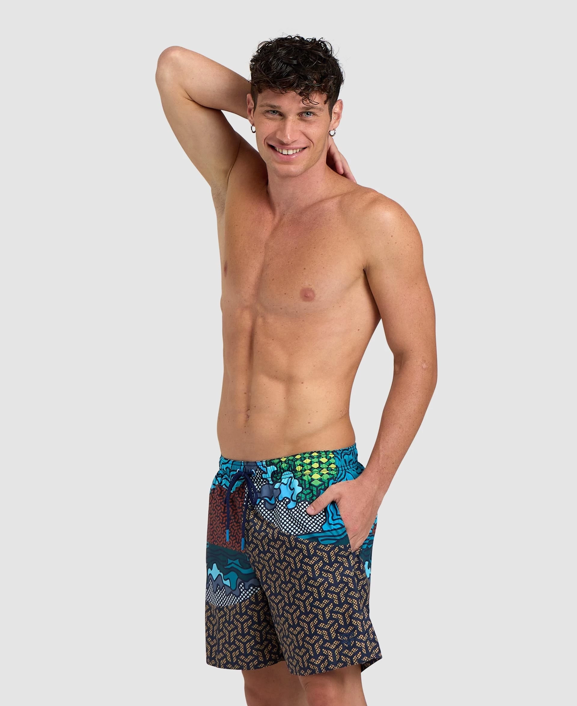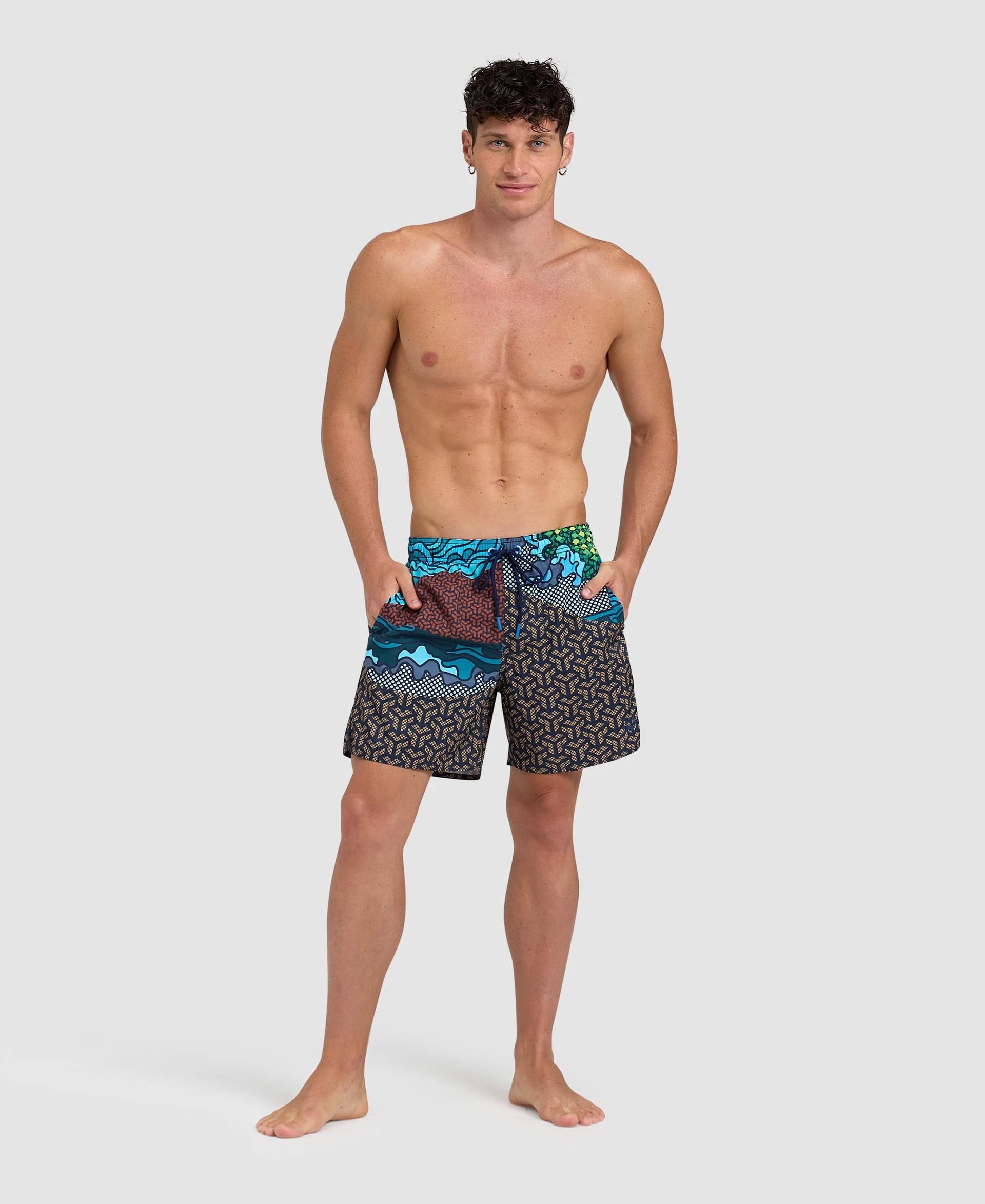 The vibrant prints celebrate arena’s connection with water. Made from a soft and quick-drying recycled fabric for outstanding comfort, these swim trunks are equipped with smart side pockets and a mesh inner brief. The adjustable external drawstring provides an excellent fit. Side length 41.5 cm.
