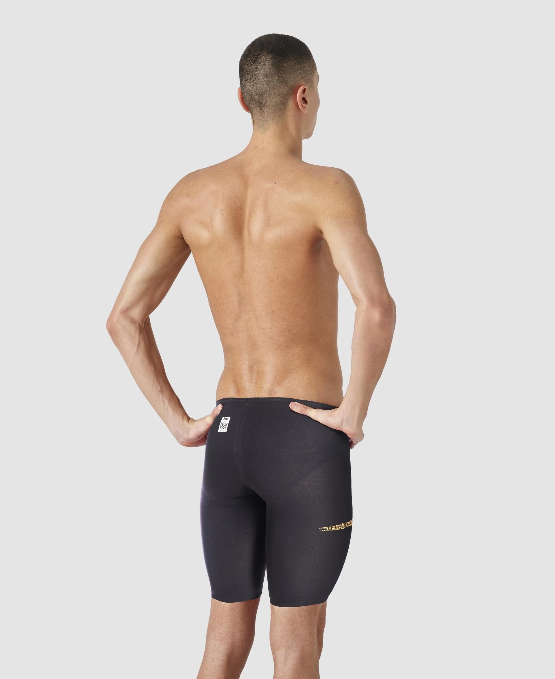 Romanian freestyle world-record holder David Popovici views the dragonfly as his personal totem. Delicate, precise, unthreatening and small, it darts away from its predators above the water. Inspired by the young athlete, our Signature Dragonfly Carbon-Air² Jammers feature a golden print of the flying insect.