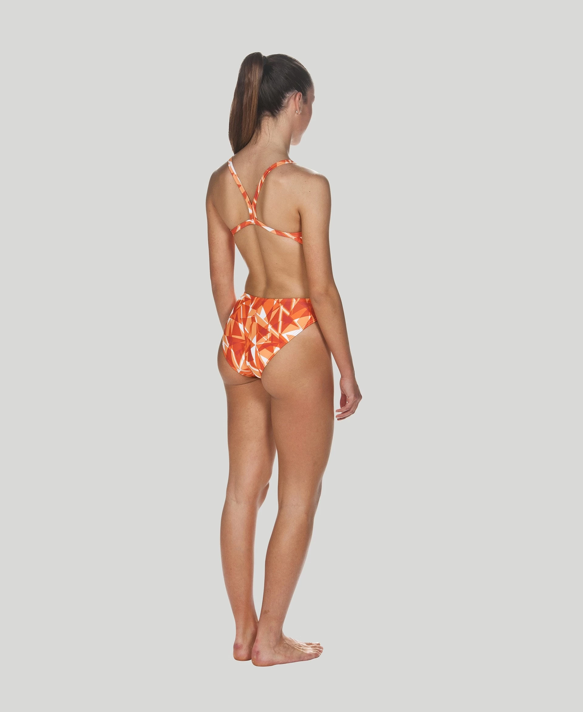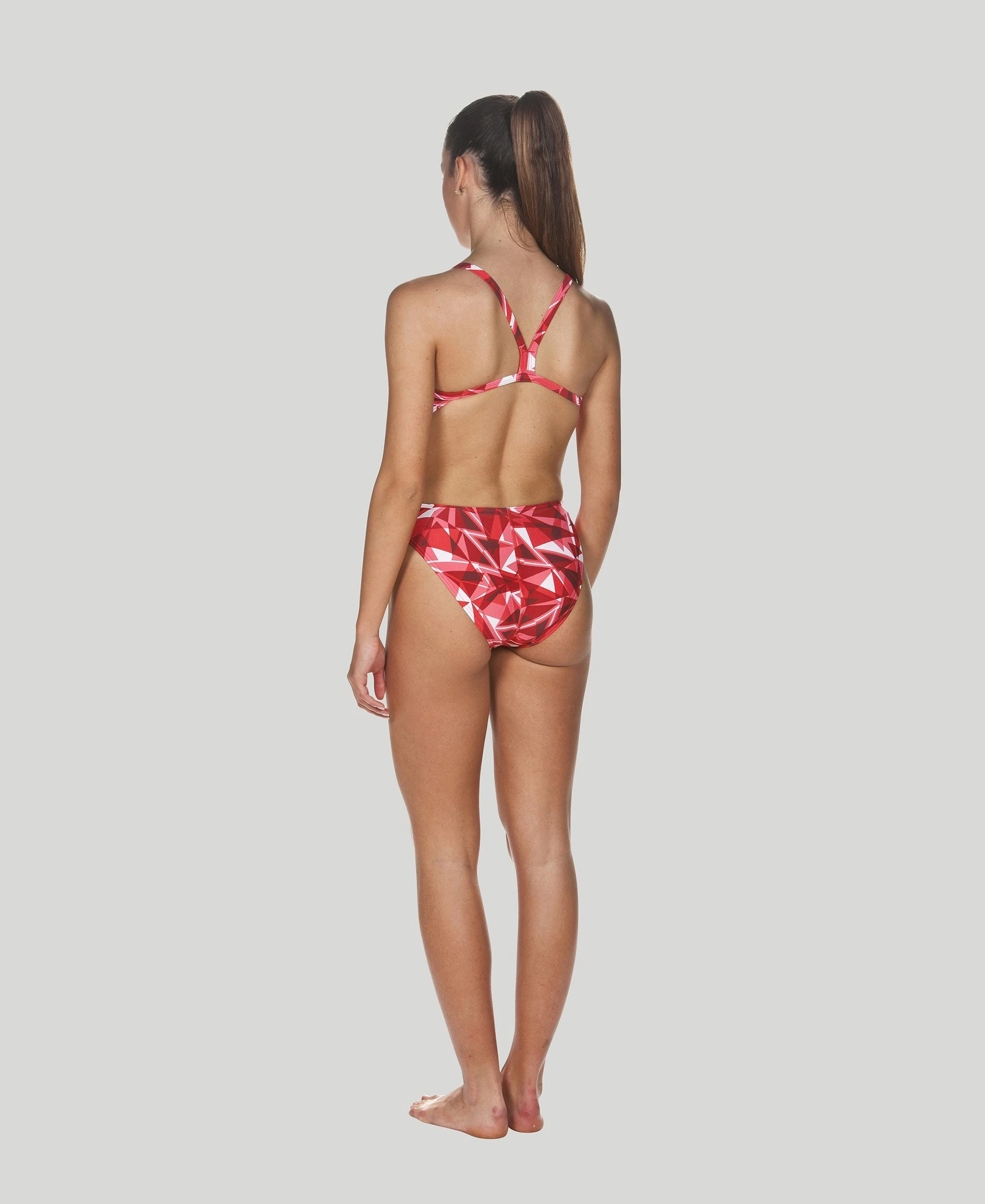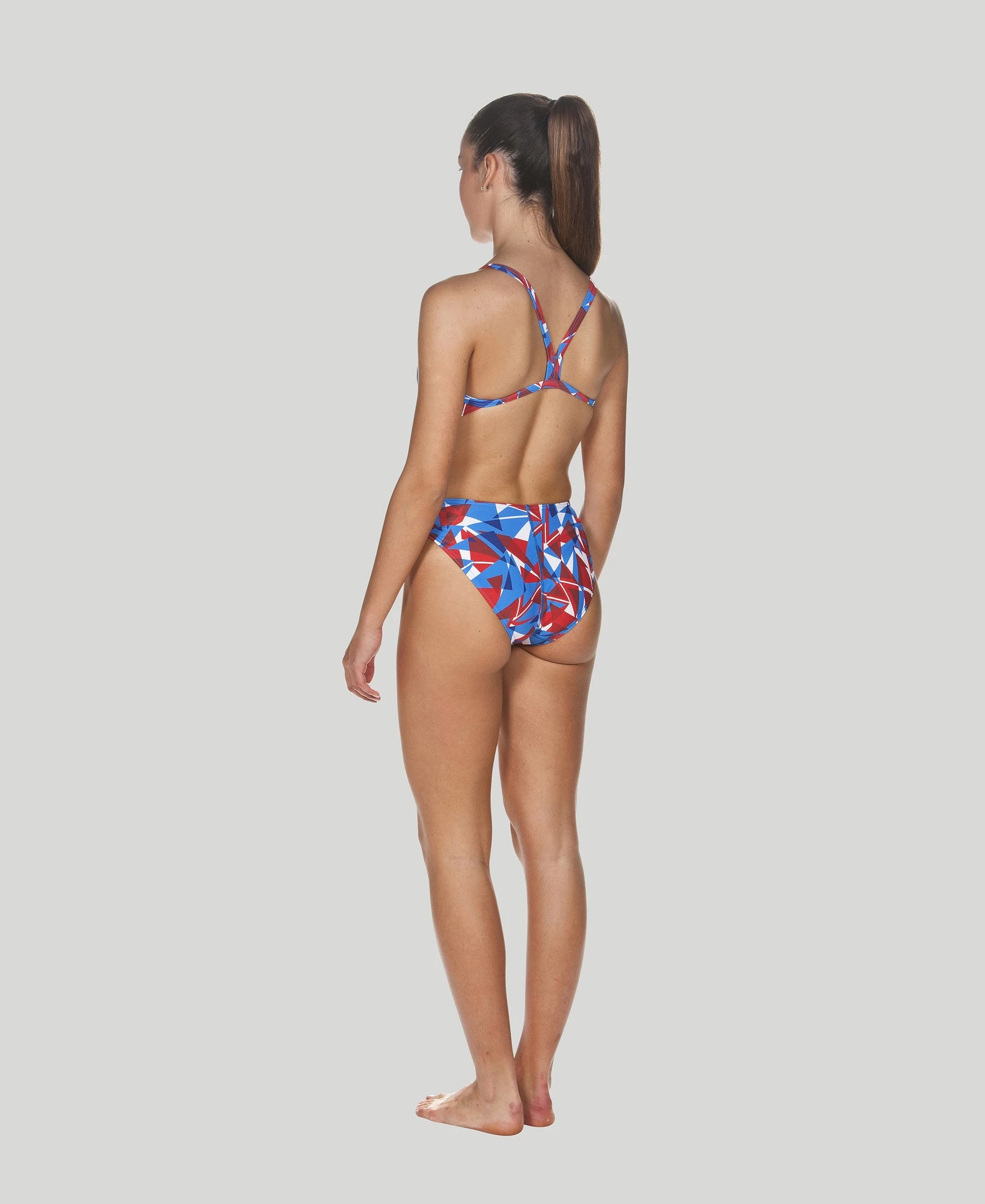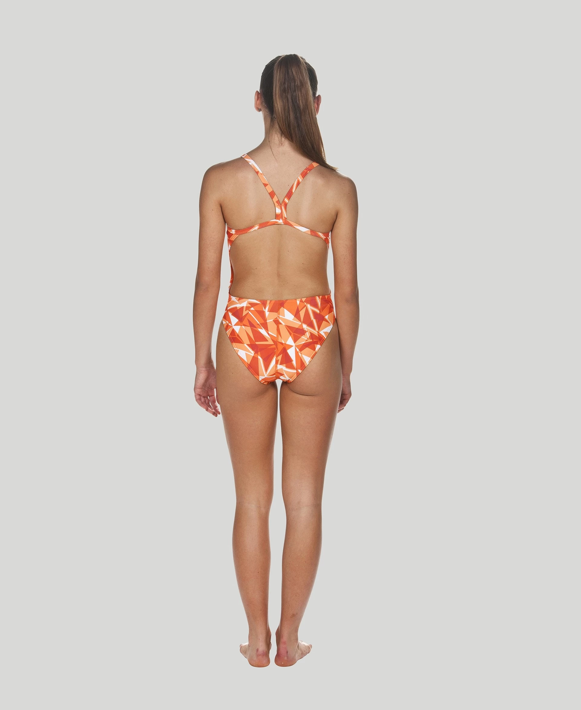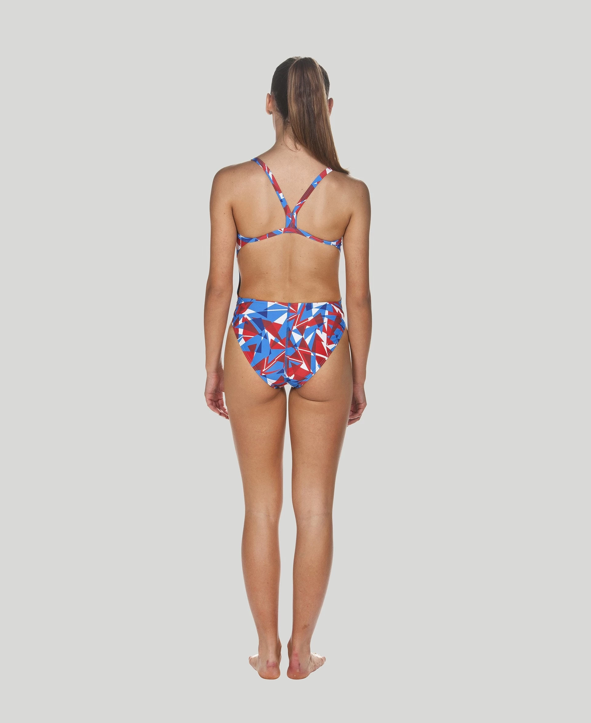 The Challenge back silhouette features thin straps and a contemporary cutout, full front lining, and a medium height leg cut for maximum freedom of movement and support where you need it most.