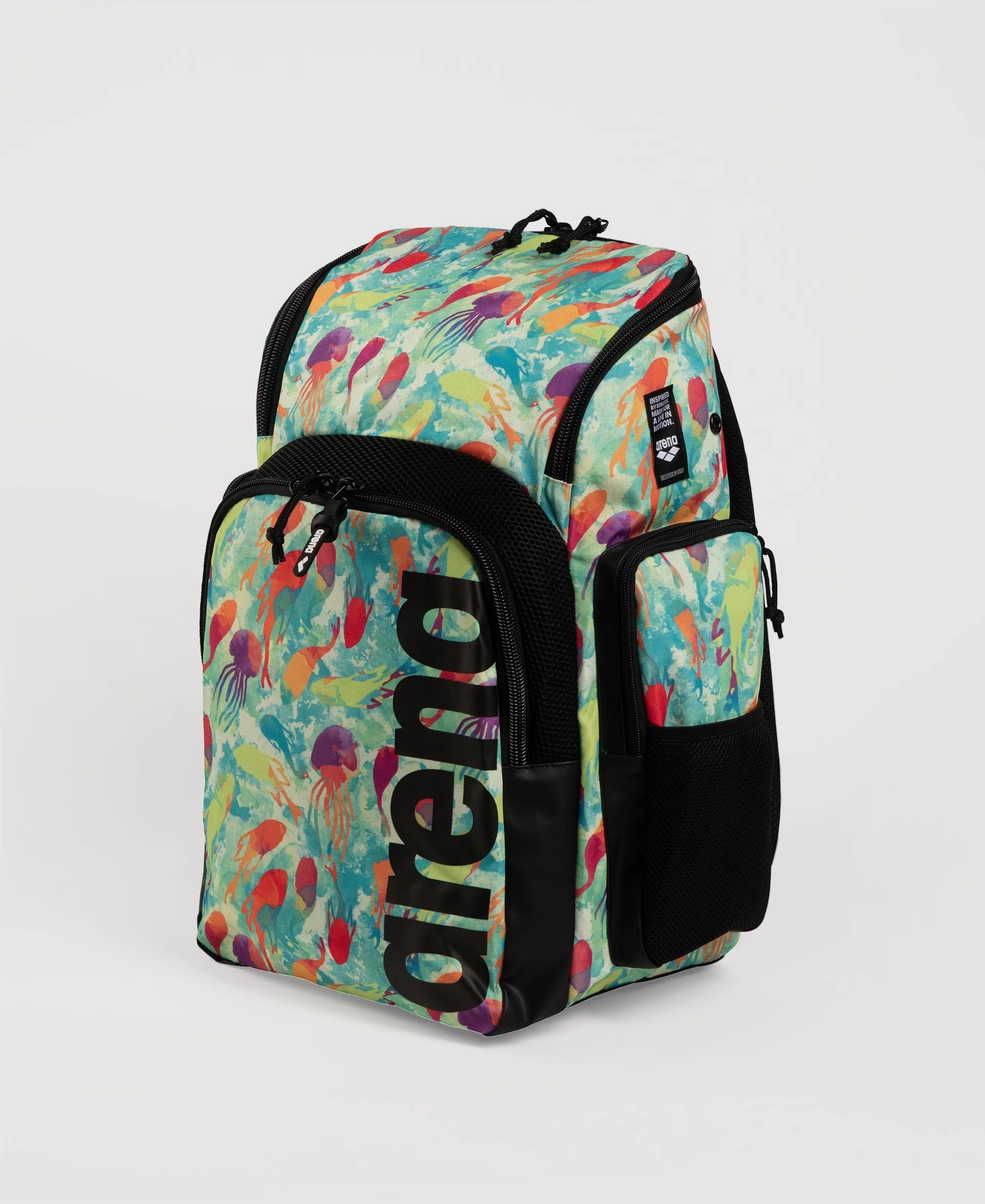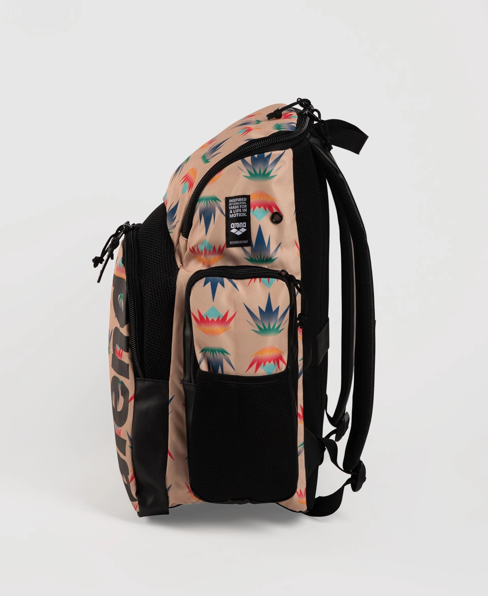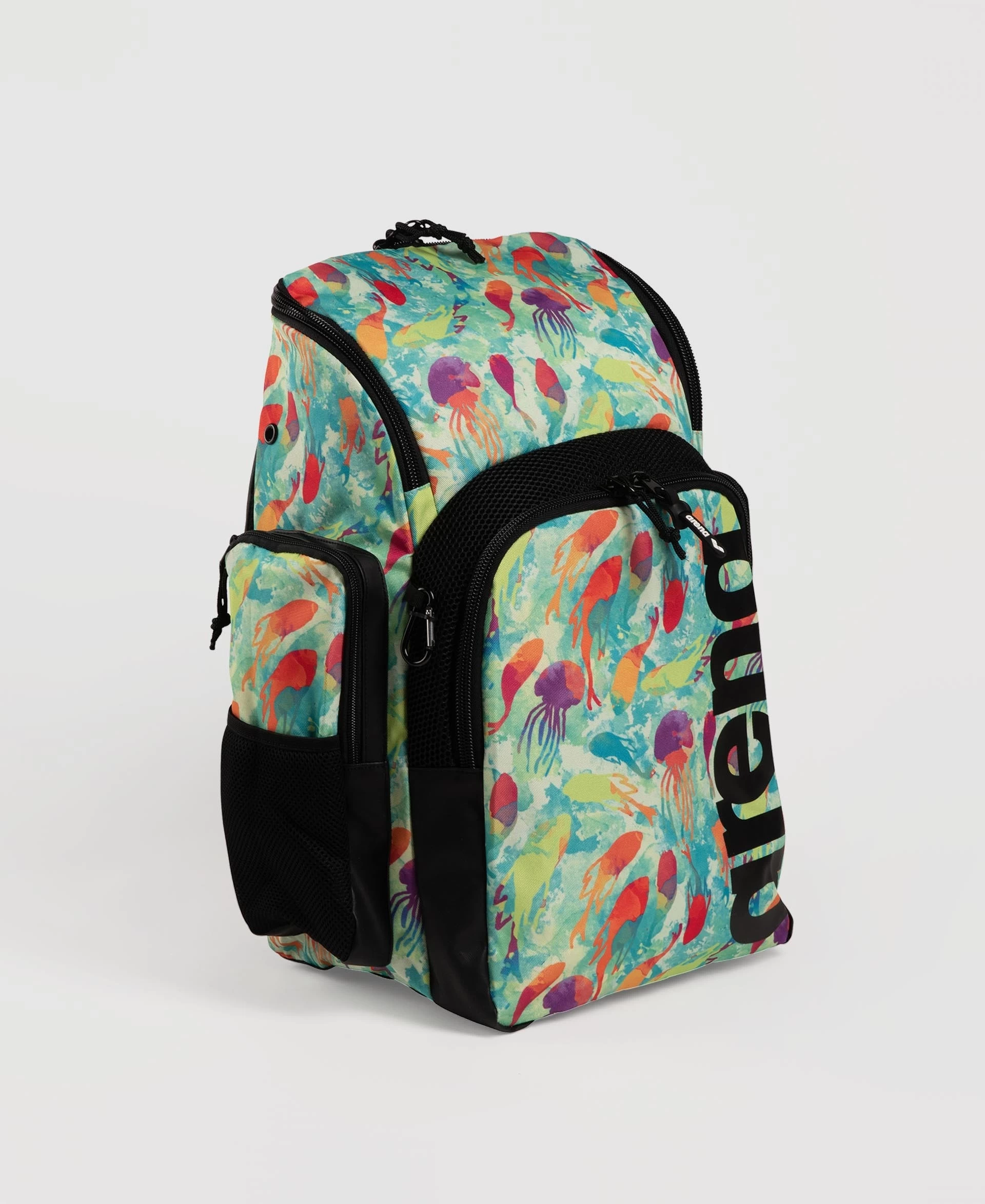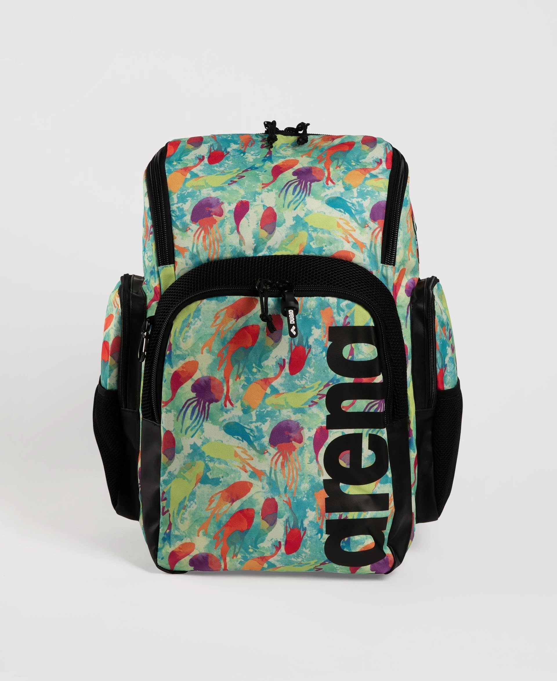 The compact, comfortable and stylish arena Spiky III Allover Backpack 35 is ideal for swimming, other sports activities and leisure time. The top-loading main compartment, three zip pockets and mesh side pockets ensure excellent storage space for all your training gear.
