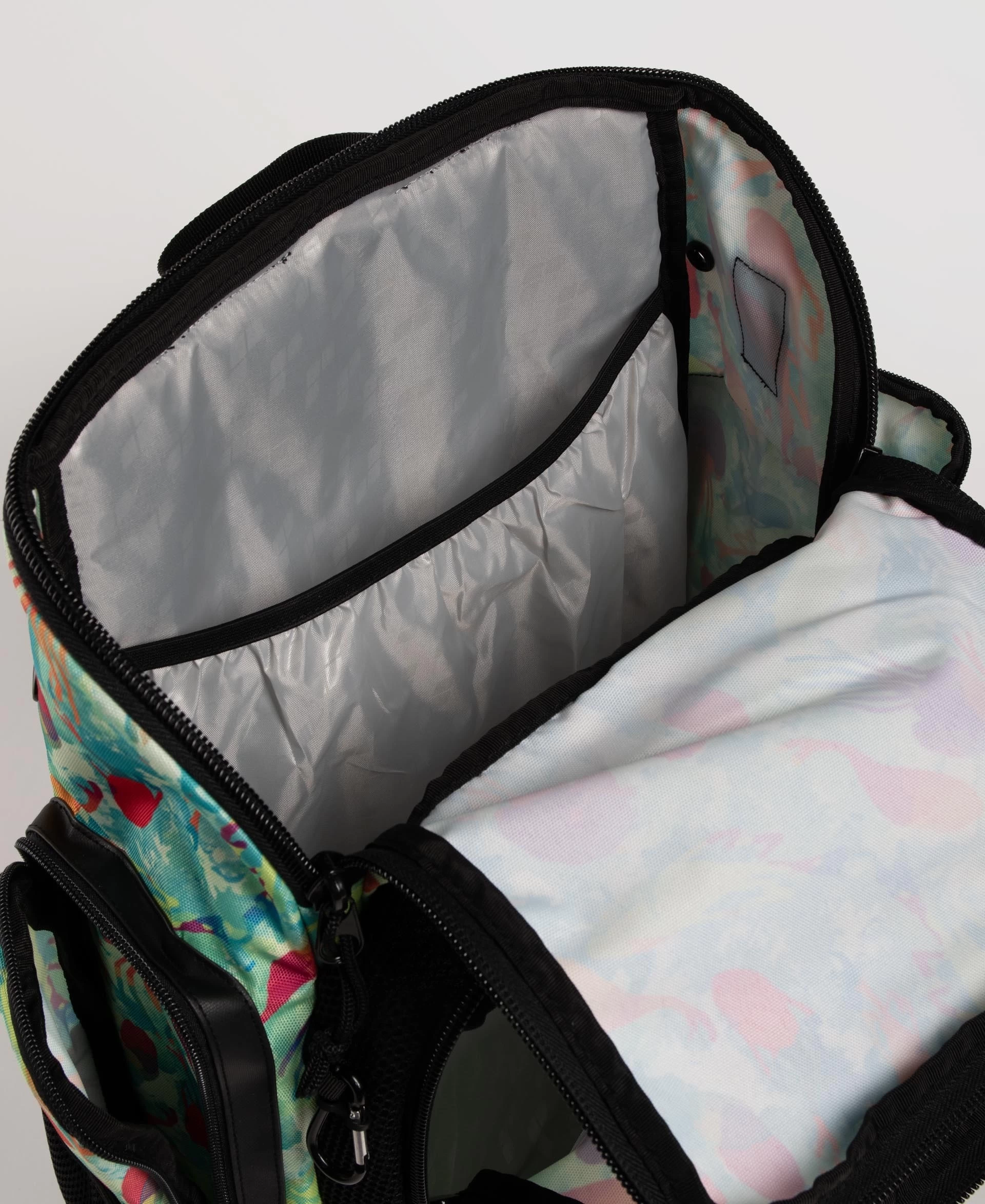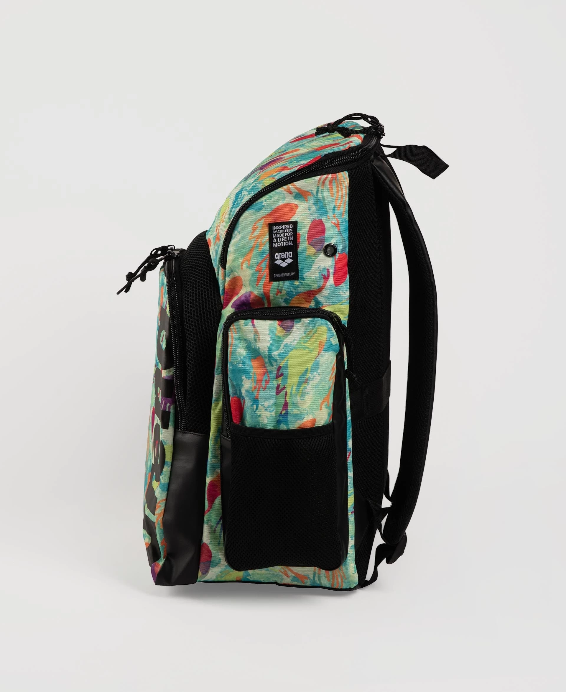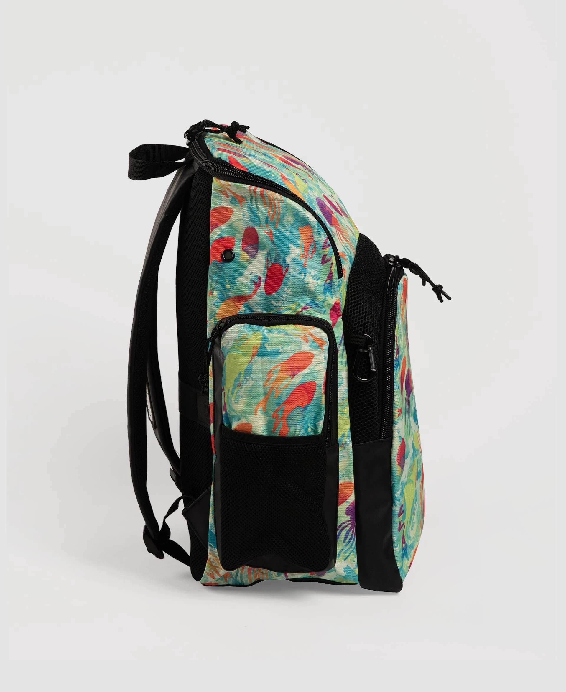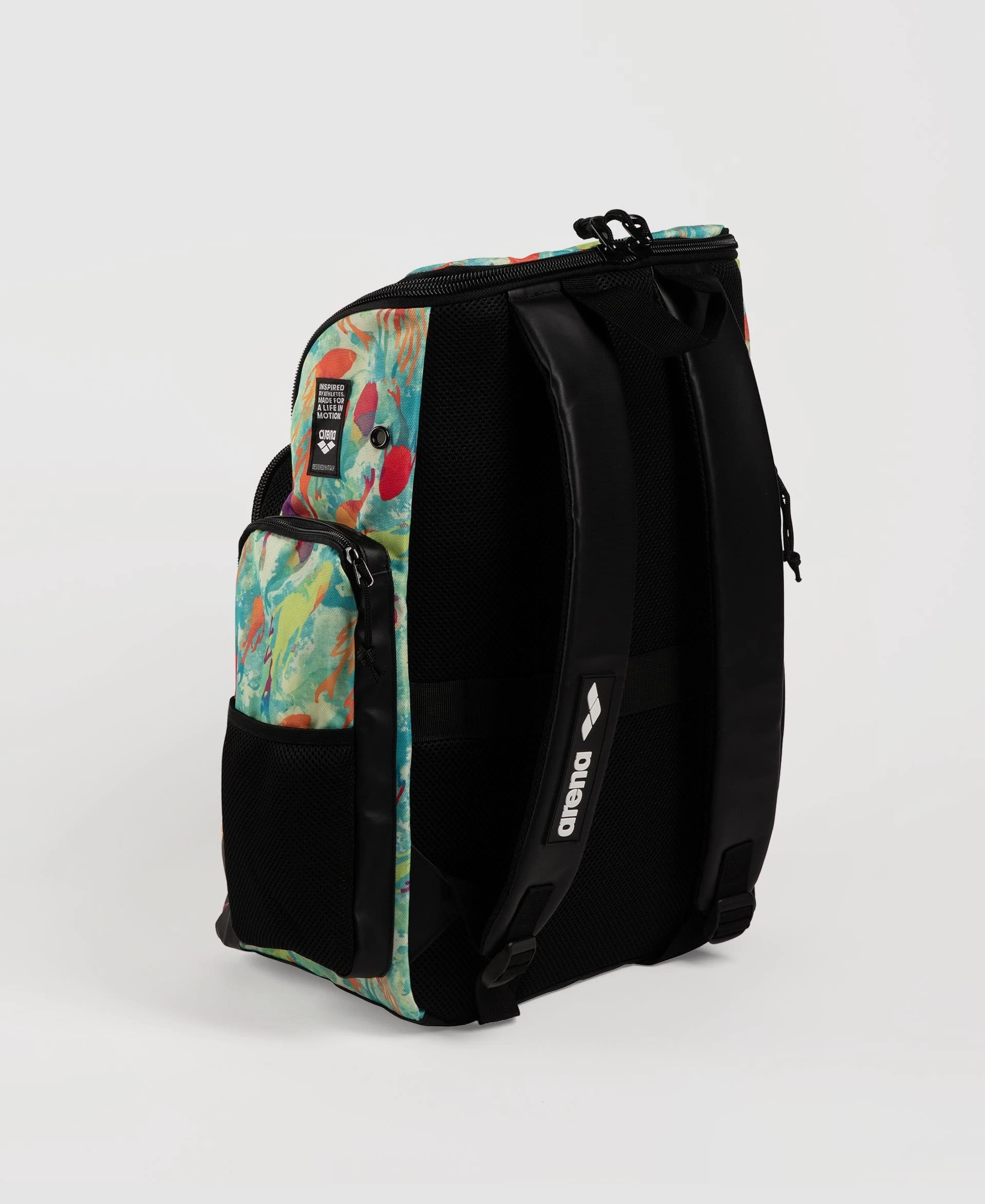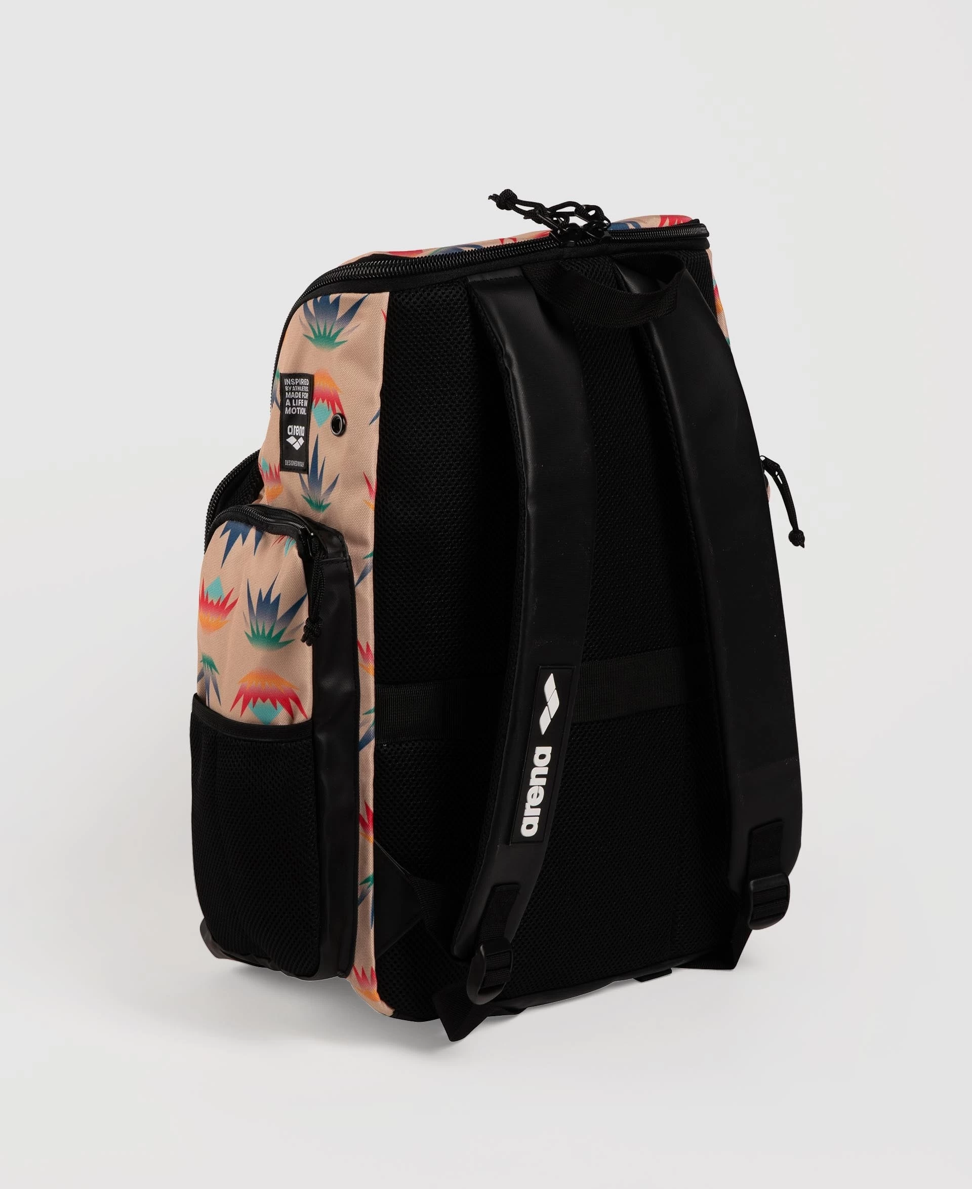 The compact, comfortable and stylish arena Spiky III Allover Backpack 35 is ideal for swimming, other sports activities and leisure time. The top-loading main compartment, three zip pockets and mesh side pockets ensure excellent storage space for all your training gear.