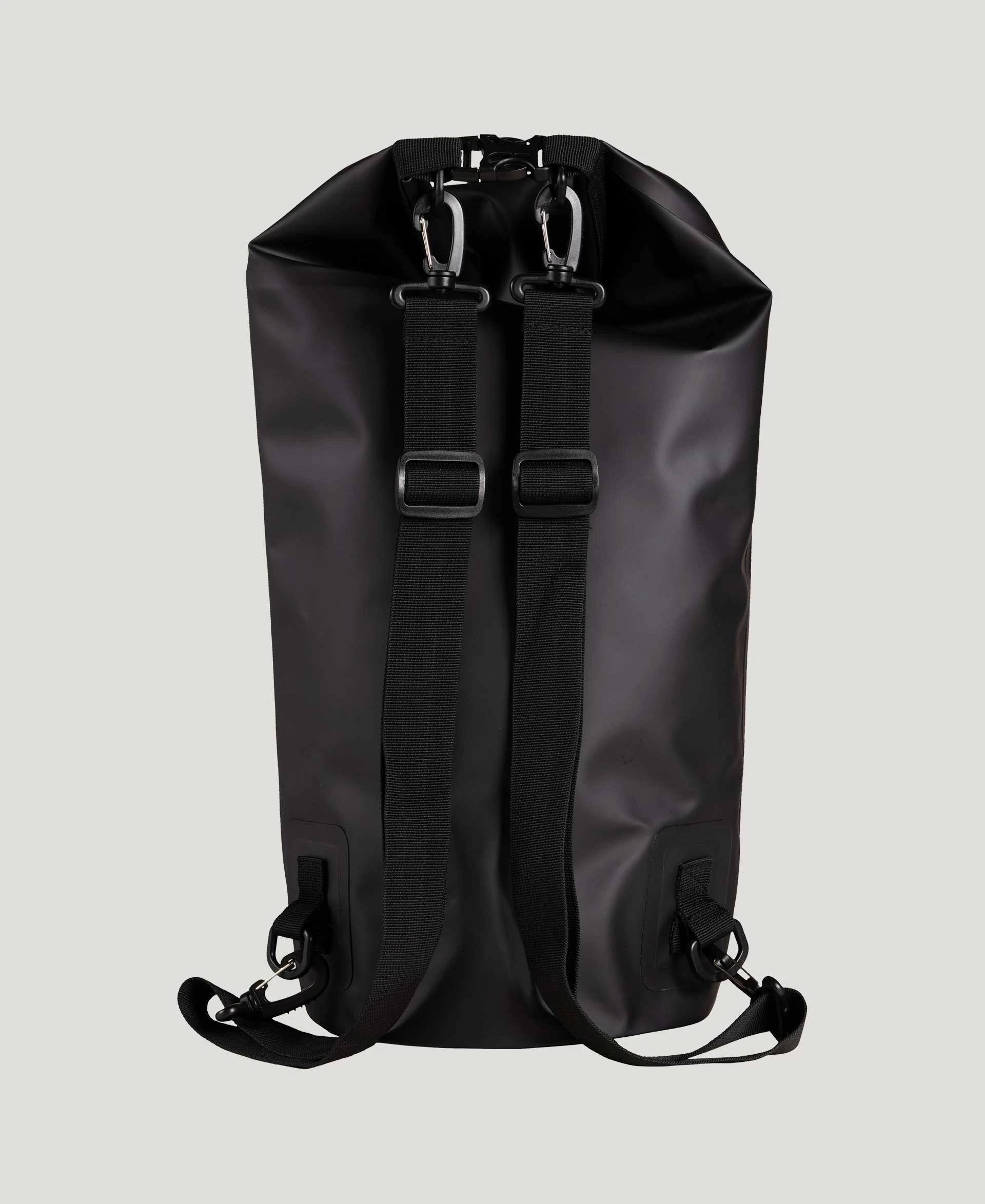The waterproof and very practical arena Drybag All Black 15L is perfect for outdoor activities and travels. It protects your belongings from water, sand, dust and dirt. The upper part can be rolled down and secured with side clips. Equipped with adjustable and removable shoulder straps. The bag can be carried as a backpack. Dimensions: diameter: 21cm, height: 57cm, 15L