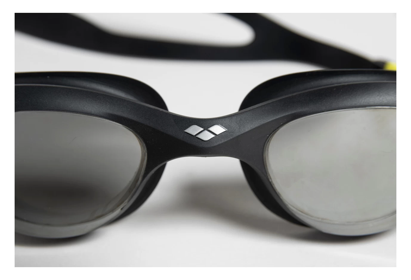 Arena The One Mirror glasses are designed for the human face to create special protective glasses that adapt to most face shapes. One Mirror goggles avoid areas of the eye that interfere with adhesion, and mirrored lenses reduce glare and light for more ease when swimming in lighted pools or outdoors. Designed for fitness or recreational swimming, this model prevents leaks and fogging. Large polycarbonate lenses for totally clear underwater vision.