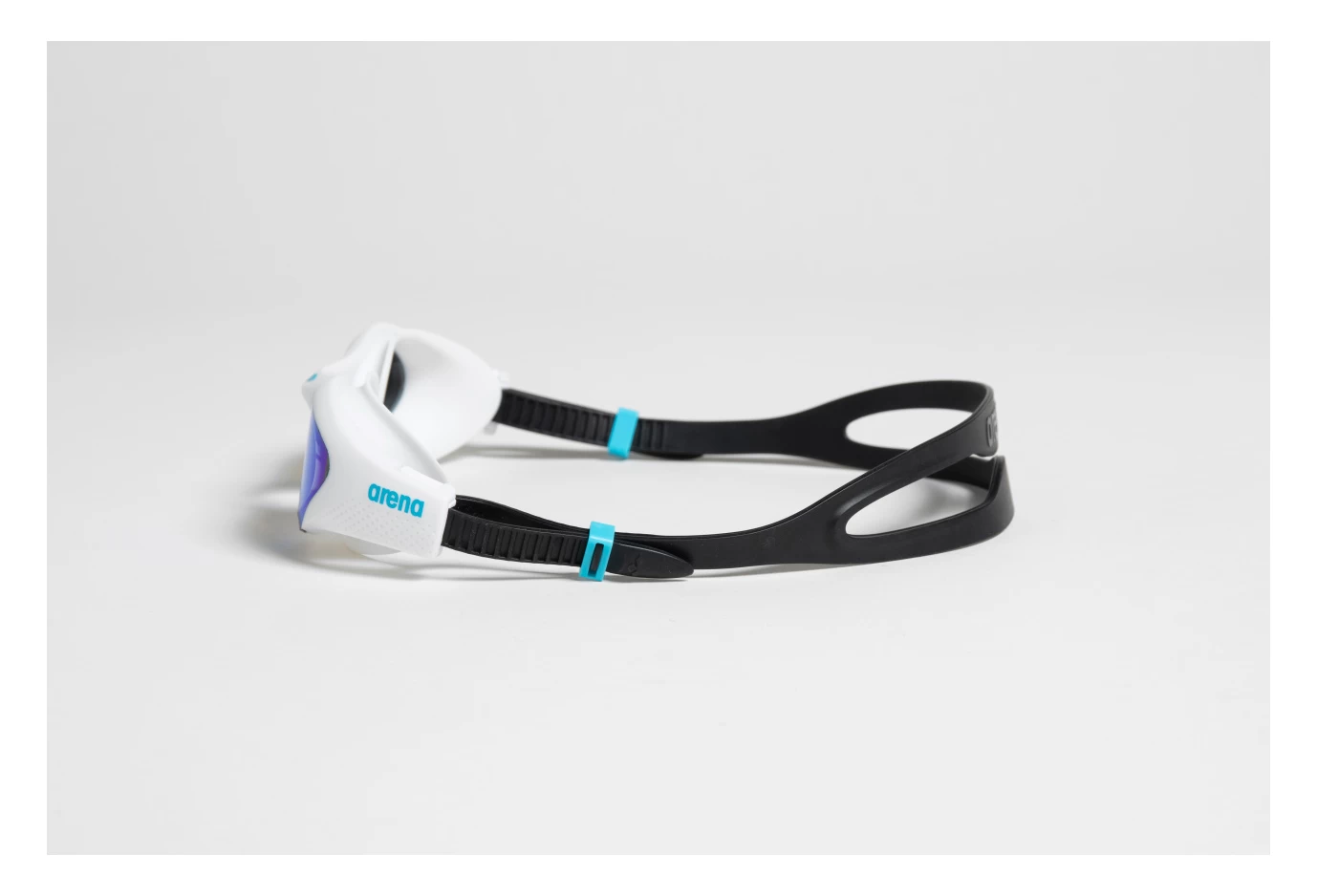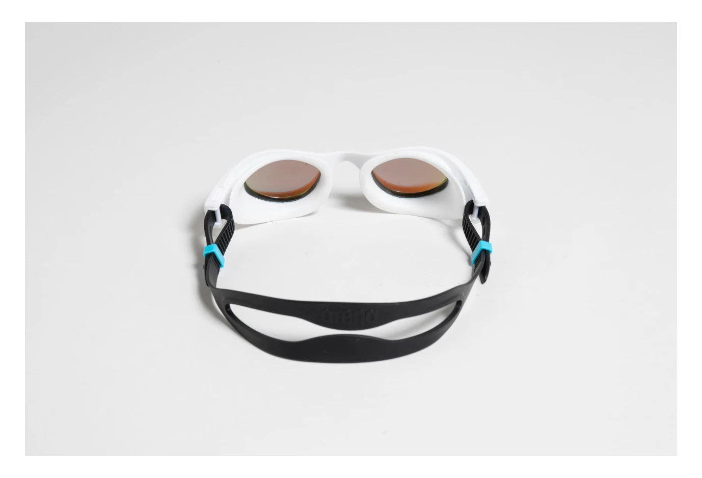 Arena The One Mirror glasses are designed for the human face to create special protective glasses that adapt to most face shapes. One Mirror goggles avoid areas of the eye that interfere with adhesion, and mirrored lenses reduce glare and light for more ease when swimming in lighted pools or outdoors. Designed for fitness or recreational swimming, this model prevents leaks and fogging. Large polycarbonate lenses for totally clear underwater vision.