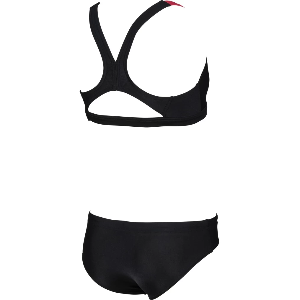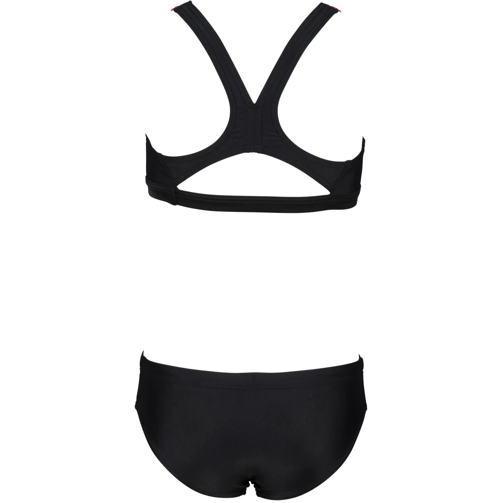 The arena Sport Bikini Thrice for girls is ideal for swimming and other activities at the pool and beach. Made of chlorine and salt water resistant MaxFit material with integrated UV protection UPF50+. Thanks to the soft material with elastane content, it is easy to put on and offers an optimal, comfortable fit. The top has a racer back and wide straps for a stable fit when swimming or doing other beach activities. The lined bikini bottoms with internal drawstring can be optimally adjusted for pleasant wearing comfort.