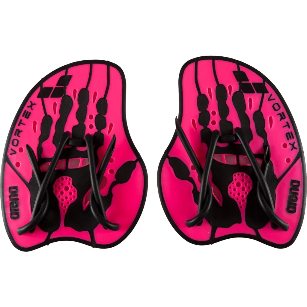 The hand paddles are ideal for the ultimate training of ambitious athletes. The paddles have an asymmetric form, which reduces the shoulder strain and entry/exit holes provide perfect feel of the water. The convex palm profile supports the natural position of the hand. Rounded soft borders ensures a higher security during training sessions and the soft surface ensures a secure support and comfort. The tube-shaped rubber bands are adjustable and can be positioned differently so that they can be adapted to each hand. The palm print on the paddle is made of slip resistant material, and provides optimum support.