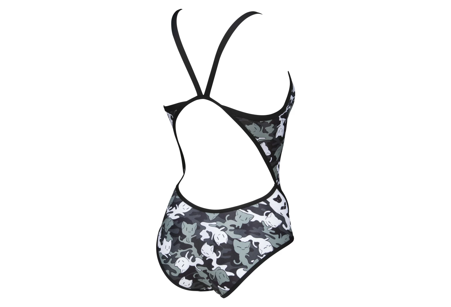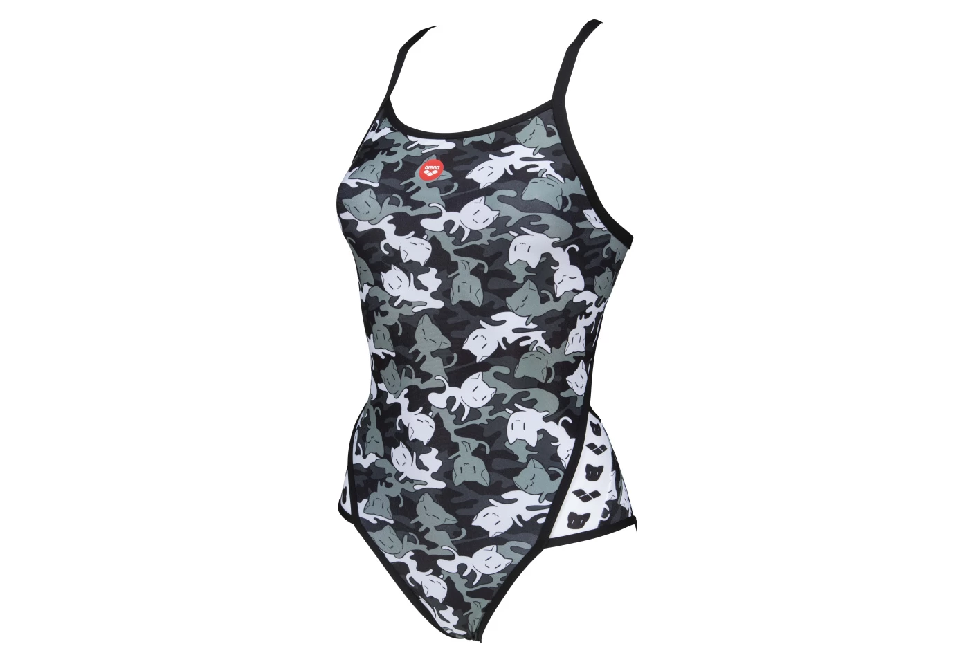 This season, put on a swimsuit with flattering graphics for your usual pool routine. An abstract camouflage pattern in soft black and white embellishes our Camo Cats one-piece. Designed to meet the requirements of swimming and frequent workouts.